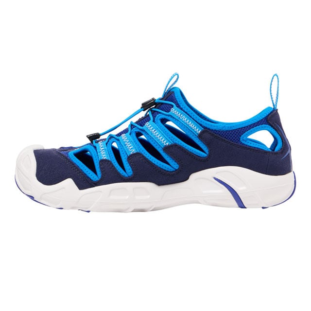 かかと部分までしっかりホールドしつつ、クイックシューレース構造で着脱が容易。